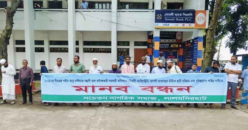 উর্মিকে স্থায়ী বহিস্কার ও গ্রেফতারের দাবী – শহীদ আবু সাঈদকে সন্ত্রাসী বলে আখ্যা ও ছাত্র-জনতার গণঅভ্যুত্থানকে কটুক্তি করা সেই নির্বাহী ম্যাজিস্ট্রেট তাপসী তাবাসসুম উর্মিকে চাকরি থেকে স্থায়ী বহিষ্কার করে আইনের আওতায় আনার দাবিতে বিক্ষোভ সমাবেশ করেছে লালমনিরহাট সচেতন নাগরিক সমাজ।